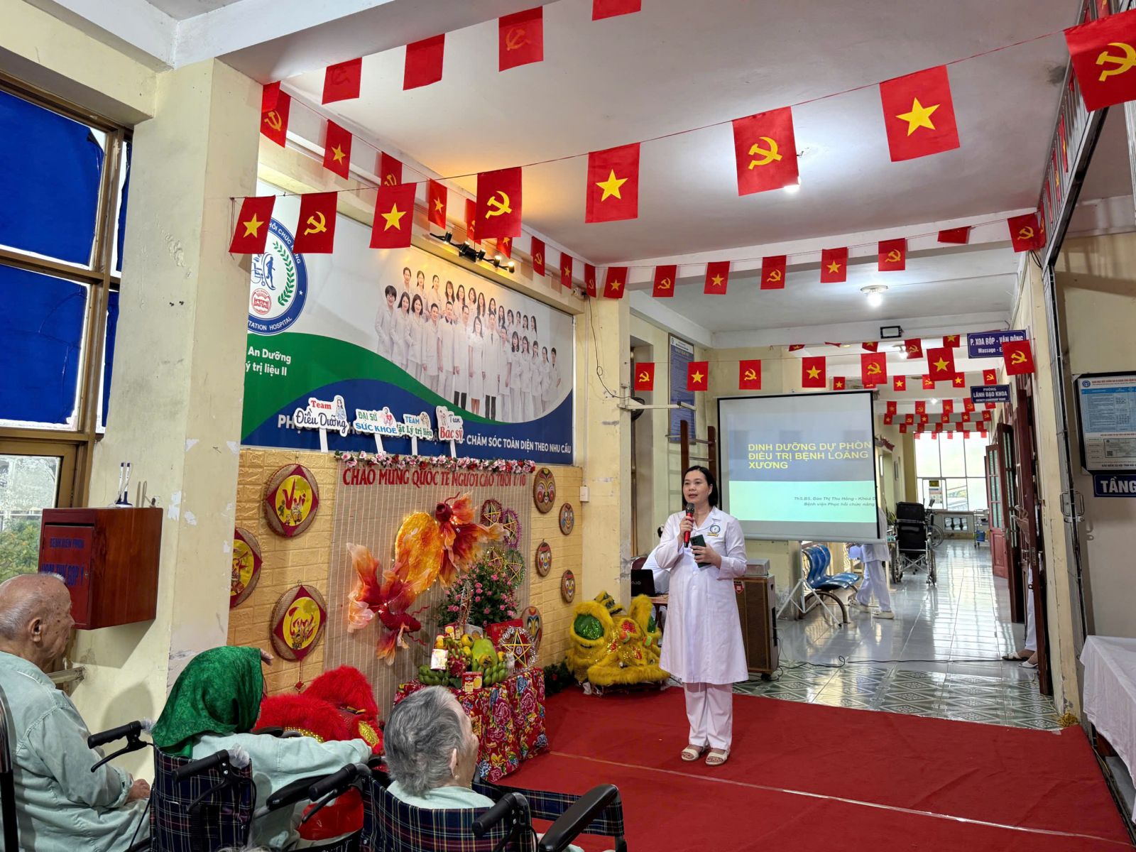 Chương trình diễn ra trong không khí ấm cúng với nhiều hoạt động thiết thực và ý nghĩa như: Giao lưu văn nghệ, chơi trò chơi, giải đố vui và tư vấn dinh dưỡng. Lãnh đạo bệnh viện đã trực tiếp thăm hỏi, tặng quà và gửi lời chúc sức khỏe tới các cụ, thể hiện tình cảm và sự quan tâm sâu sắc.