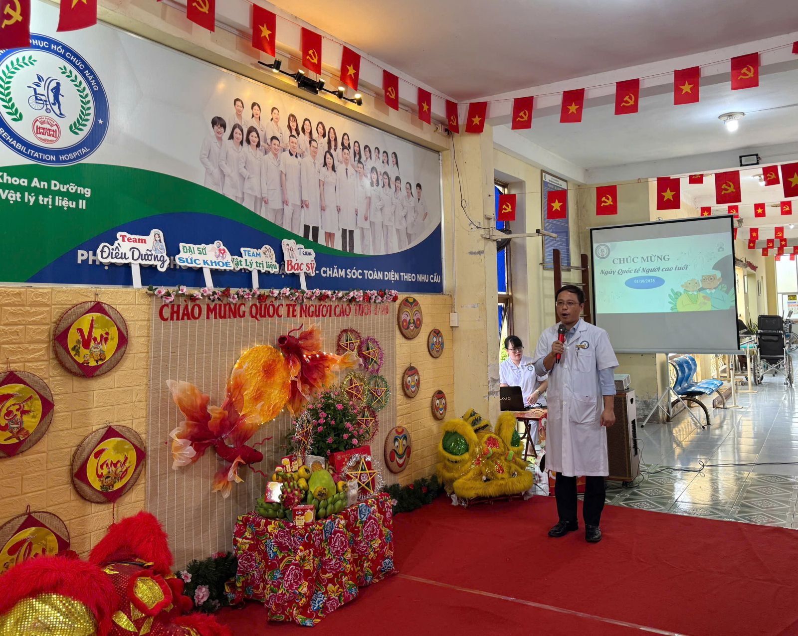 Hưởng ứng ngày Quốc tế Người cao tuỏi 1/10 và chào mừng Tết Trung thu - một ngày lễ cổ truyền đặc trưng của người Việt, sáng nay ngày 29/9/2025, Bệnh viện Phục hồi chức năng Hải Dương đã tổ chức thành công chương trình "Trăng sáng tuổi vàng". Chương trình như một lời tri ân cũng như chăm sóc sức khoẻ thể chất và tinh thần cho các bệnh nhân đang điều trị tại khoa An dưỡng của Bệnh viện.