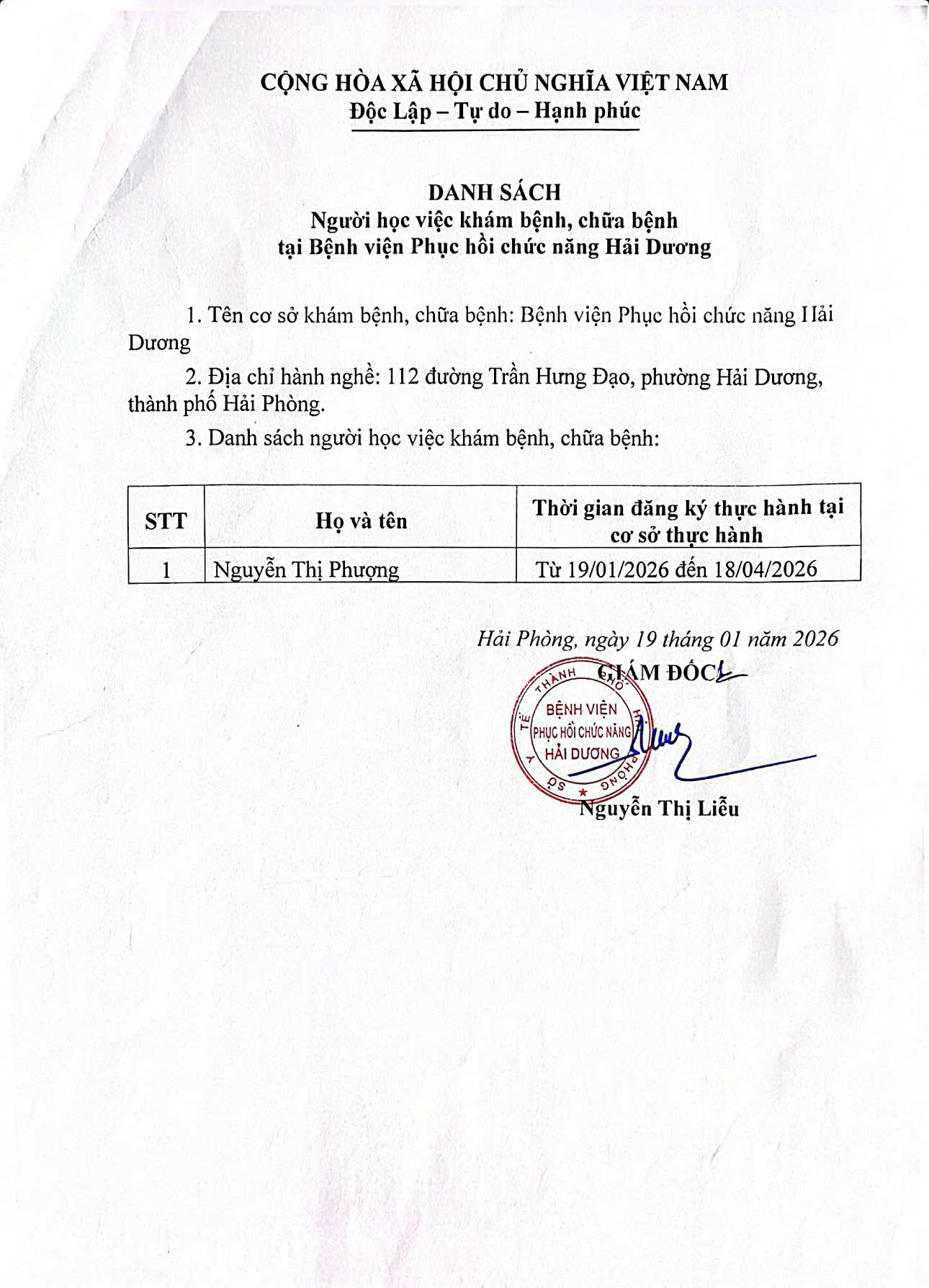 Bệnh viện Phục hồi chức năng Hải Dương xin thông báo: