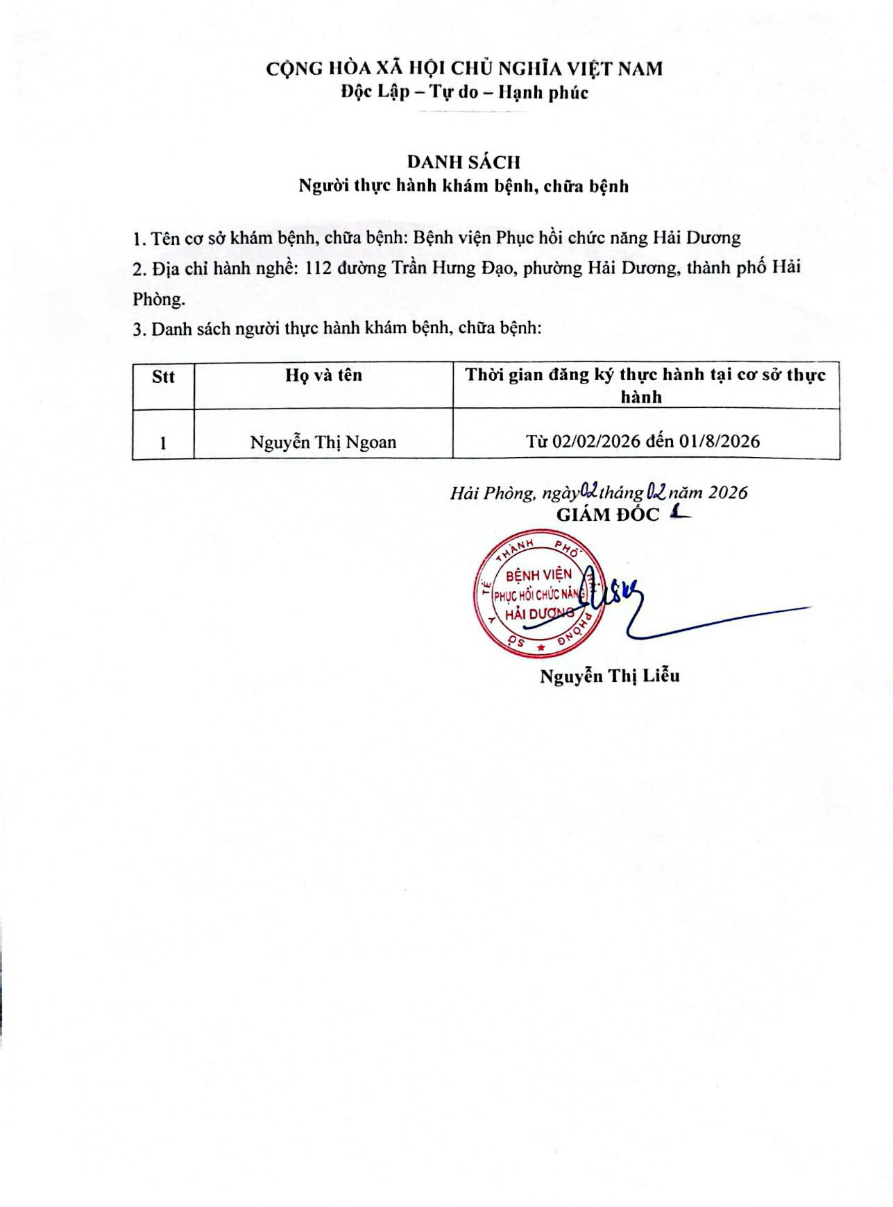 Bệnh viện Phục hồi chức năng Hải Dương xin thông báo: