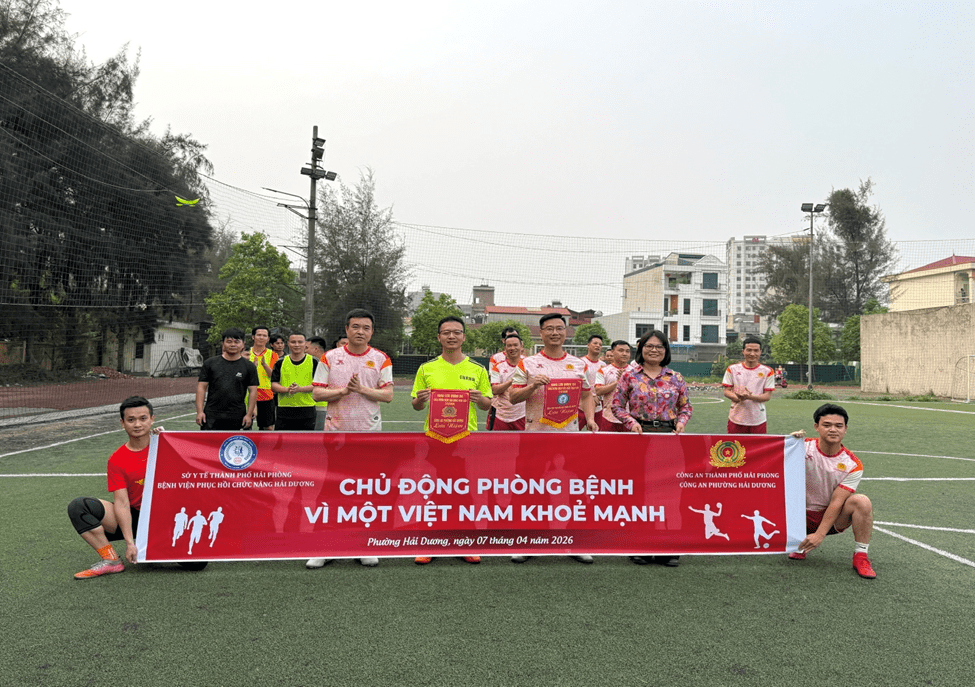 Hưởng ứng Ngày Sức khỏe toàn dân (07/4), Bệnh viện Phục hồi chức năng Hải Dương đã phối hợp tổ chức giao hữu bóng đá với Công an phường Hải Dương cùng slogan “Chủ động phòng bệnh vì một Việt Nam khỏe mạnh”. Đây là hoạt động thiết thực nhằm nâng cao đời sống tinh thần, rèn luyện thể chất và tăng cường mối quan hệ gắn bó giữa hai đơn vị trên địa bàn.