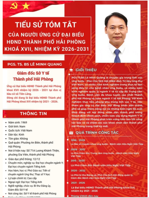 TIỂU SỬ TÓM TẮT NGƯỜI ỨNG CỬ ĐẠI BIỂU HĐND THÀNH PHỐ HẢI PHÒNG KHÓA XVII, NHIỆM KỲ 2026 – 2031